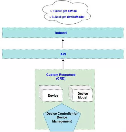 KubeEdge extends Kubernetes' API through CRD (Customer Resource Definition). The extended API resources include: Device and DeviceModel, so that we can perform CRUD operations on device resources in the cloud through Kubernetes command line tool Kubectl or other means. The Device resource maps devices associated with each edge node, such as sensors. DeviceModel is a template defined for a class of devices. It is convenient for users to perform batch operations on Device resources easily in the cloud based on the DeviceModel template.