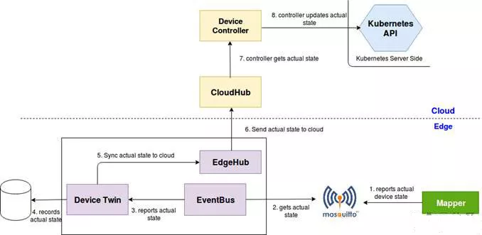 DeviceTwin: Responsible for storing device status and synchronizing device status to the cloud.